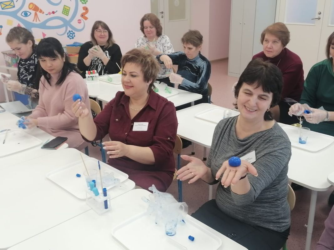 Обширной и интересной была основная часть семинара. Опытом работы по формированию трудовых навыков и основ ранней профориентации поделились воспитатели О.В. Литовец, А.Г. Закирова и Н.В. Шаронова. Об особенностях работы с детьми раннего дошкольного возраста с ОВЗ рассказали педагог-психолог Ю.А. Иванова, учитель-логопед М.Ю. Шуляк и учитель-дефектолог С.А. Хлюснева.