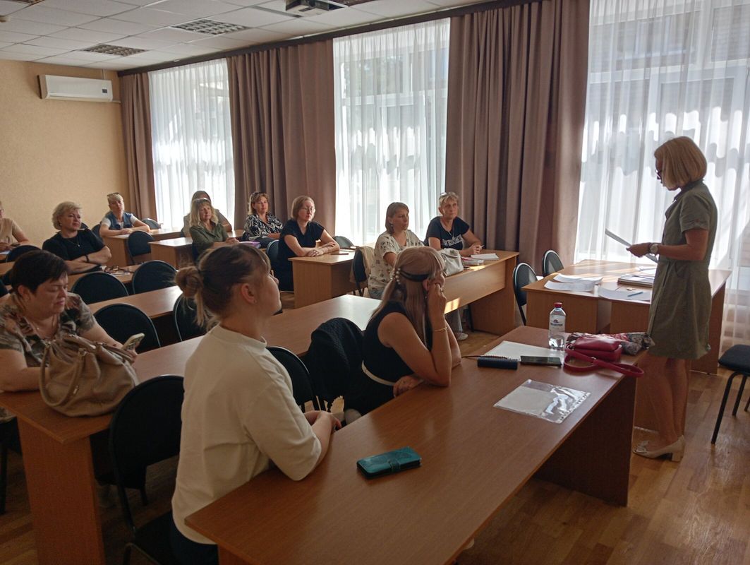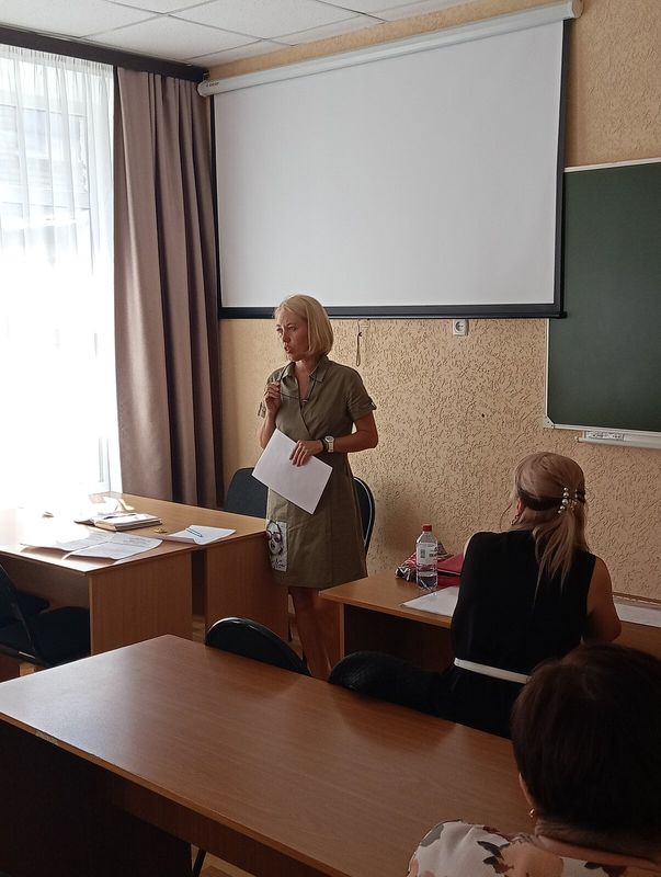 Началось заседание со вступительного слова методиста МКУ ОМЦ Хохловой Е.Ю. Елена Юрьевна ознакомила коллег с нововведениями в образовании нового учебного года.