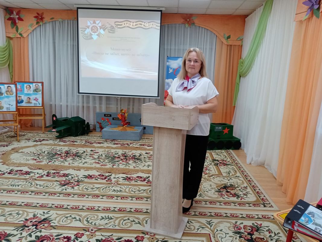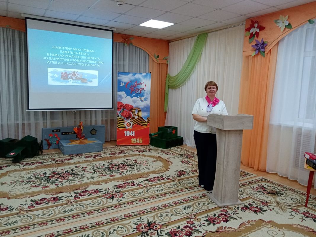 Завершением семинара стало выступление воспитателя Киселевой Елены Александровны на тему «Парад Победы в ДОУ» и показ трогательного видеофильма о тематическом мероприятии, проведённом в детском саду в год празднования 80-летия Великой Победы.
