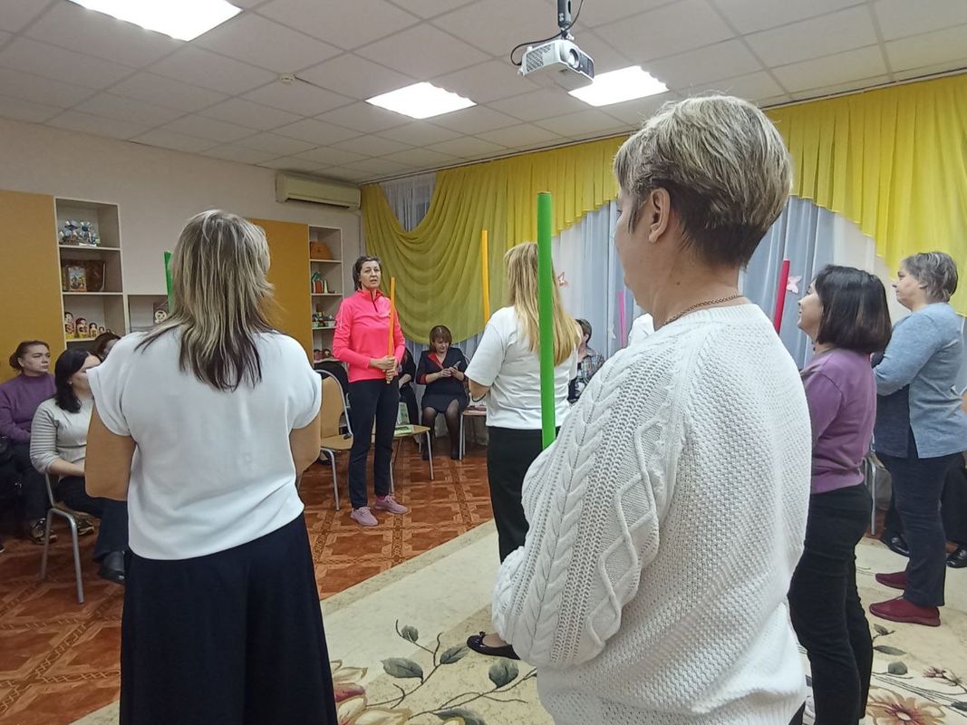 Инструктор по физической культуре А.В. Белякова увлекла коллег в мир народных подвижных игр, проведя мастер-класс по мини-композиции «Богатырские забавы».