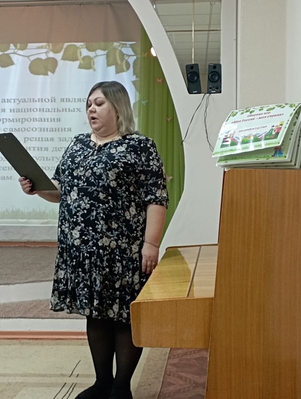 Воспитатель А.В. Аксенова представила развивающее игровое пособие – сборник игр «Моя страна – моя Россия», наполненный наглядным и игровым материалом, знакомящим детей с традициями, символикой, национальными костюмами, фольклором и музыкальными инструментами народов России и мира.