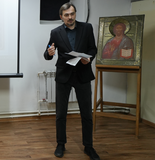 Далее состоялась педагогическая гостиная, посвящённая истории церковных песнопений, которая включала в себя две части. В начале встречи заместитель руководителя Паломнической службы Балаковской епархии по экскурсионно-краеведческой работе Павел Константинович Соловьёв рассказал об основании села Балаково, Христорождественском храме, о священнике Константине Введенском, о второклассной женской учительской школе г. Балаково и о первом концерте И. Я. Паницкого в этой школе. Лектор подробно рассказал о музыкальном певческом репертуаре воспитанниц школы, отдельно остановился на описании концерта, посвященного 100-летию Отечественной войны 1812 г., представил гостям фотографии учительской школы.