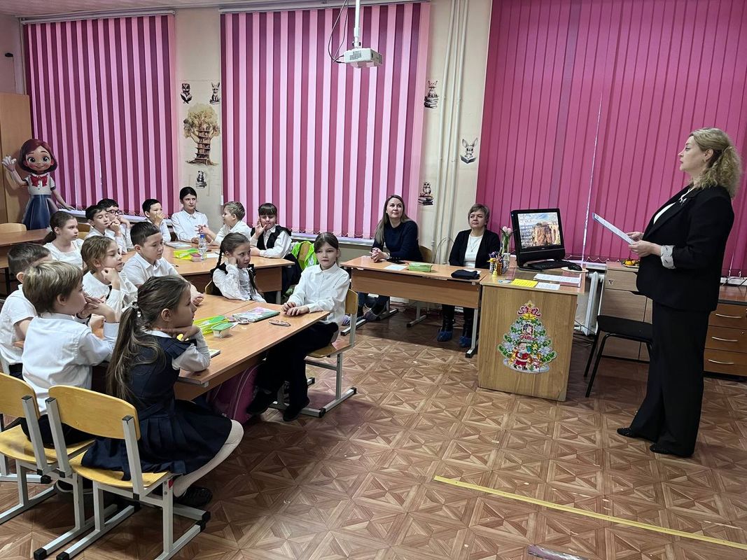 В начальной школе: первоклассники показали родителям, как умеют решать текстовые задачи, ученики 2А класса изучали виды углов, дети 3Б класса, закрепляя табличные случаи деления и умножения, совершили предновогоднее путешествие с Дедом Морозом, а ребята 2Б класса на уроке русского языка учились писать письмо Деду Морозу. На уроках окружающего мира в 3А классе узнали о защитных системах организма, а в 4Б классе познакомились с водоёмами родного края.