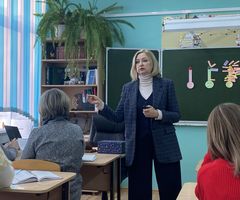 Мастер‑класс «От приветствия к учебной задаче: начало урока по ФГОС» показала педагог-наставник Салихова Наталья Анатольевна, учитель иностранного языка МАОУ СОШ № 16. Спикер акцентировала внимание на влажности первых минут урока как фундамента успешного занятия. В ходе презентации были раскрыты: